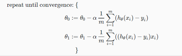 $$\theta_{j}:=\theta_{j} – \alpha\frac{\partial }{\partial \theta_{j}}J(\theta_{0},\theta_{1})$$